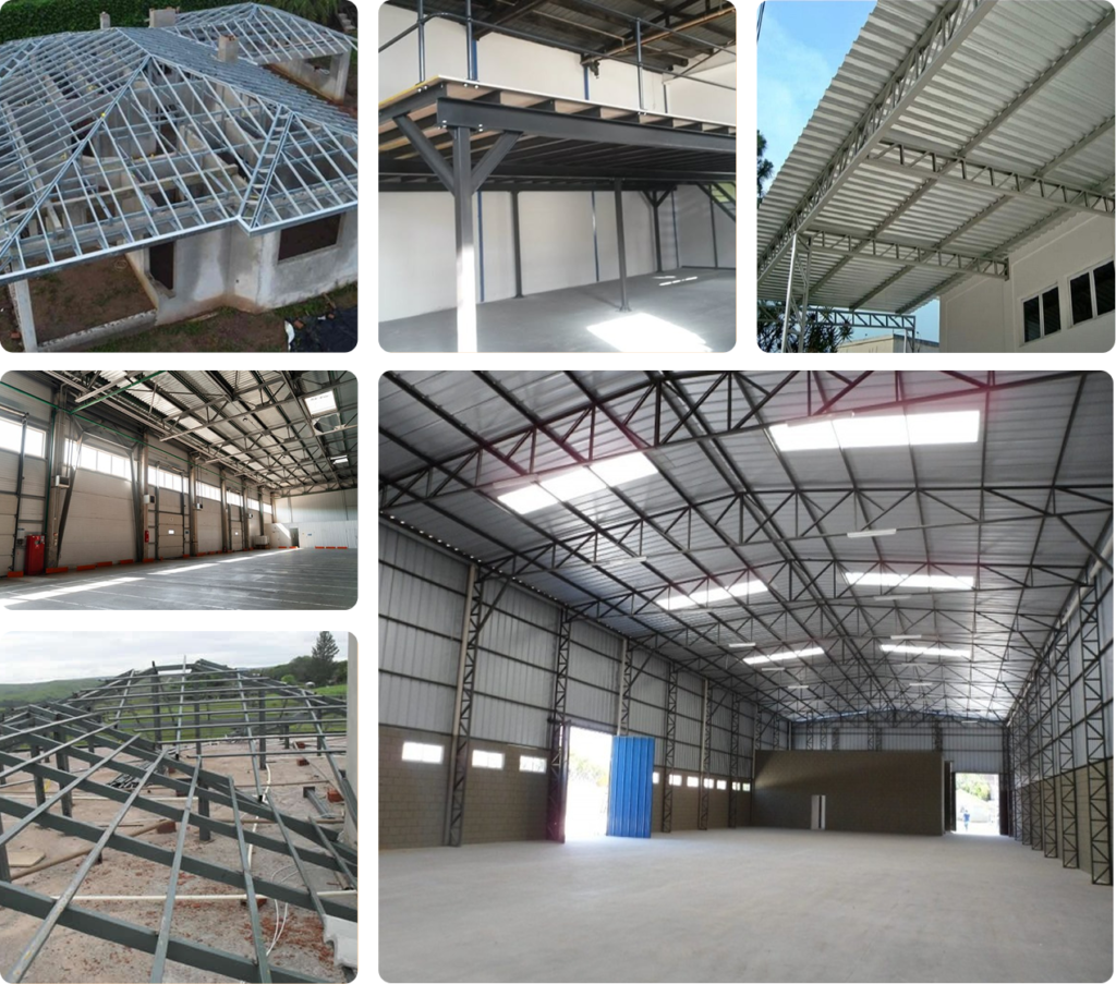 Galpões, coberturas metálicas, mezaninos, escadas, obras residenciais. Segurança e qualidade com preço justo.